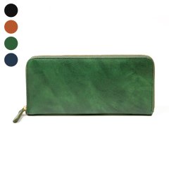 ムラ染めオリーブレザー 札入れ [A-9058]