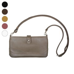 miniポシェットと名付けた通りのミニマムサイズなので長財布は入りません。でも2つ折り、3つ折りなどのサイズは入りますので、荷物を最小限にしたい方におススメのバッグです。タックを取った底部の両サイドはマチ幅を確保しつつ、丸いカーブを描いてガーリーなイメージ。小っちゃめサイズとミトンのようなシルエットが女の子らしい斜め掛けポシェットです。