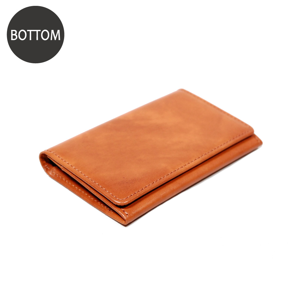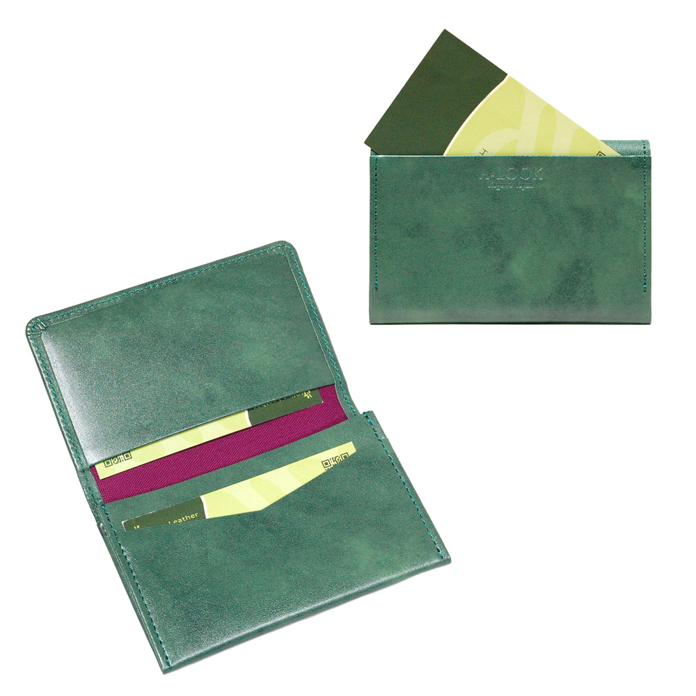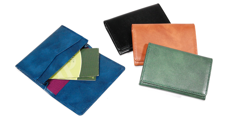 ムラ染めの濃淡が美しい、オリーブレザーの名刺入れ