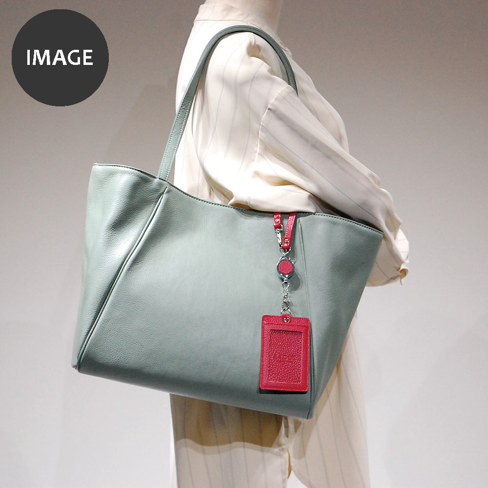 バッグの持ち手に取り付けたまま、リールをスッと伸ばして使用可能。約40cm伸びるので、バスの乗車口や駅の改札、オフィスの入館ゲートでも、バッグを肩にかけたまま自然な動作でタッチ&提示が完了します。レザー製ストラップの先はナスカンになっているので、簡単にバッグの持ち手などに取り付けることができます。