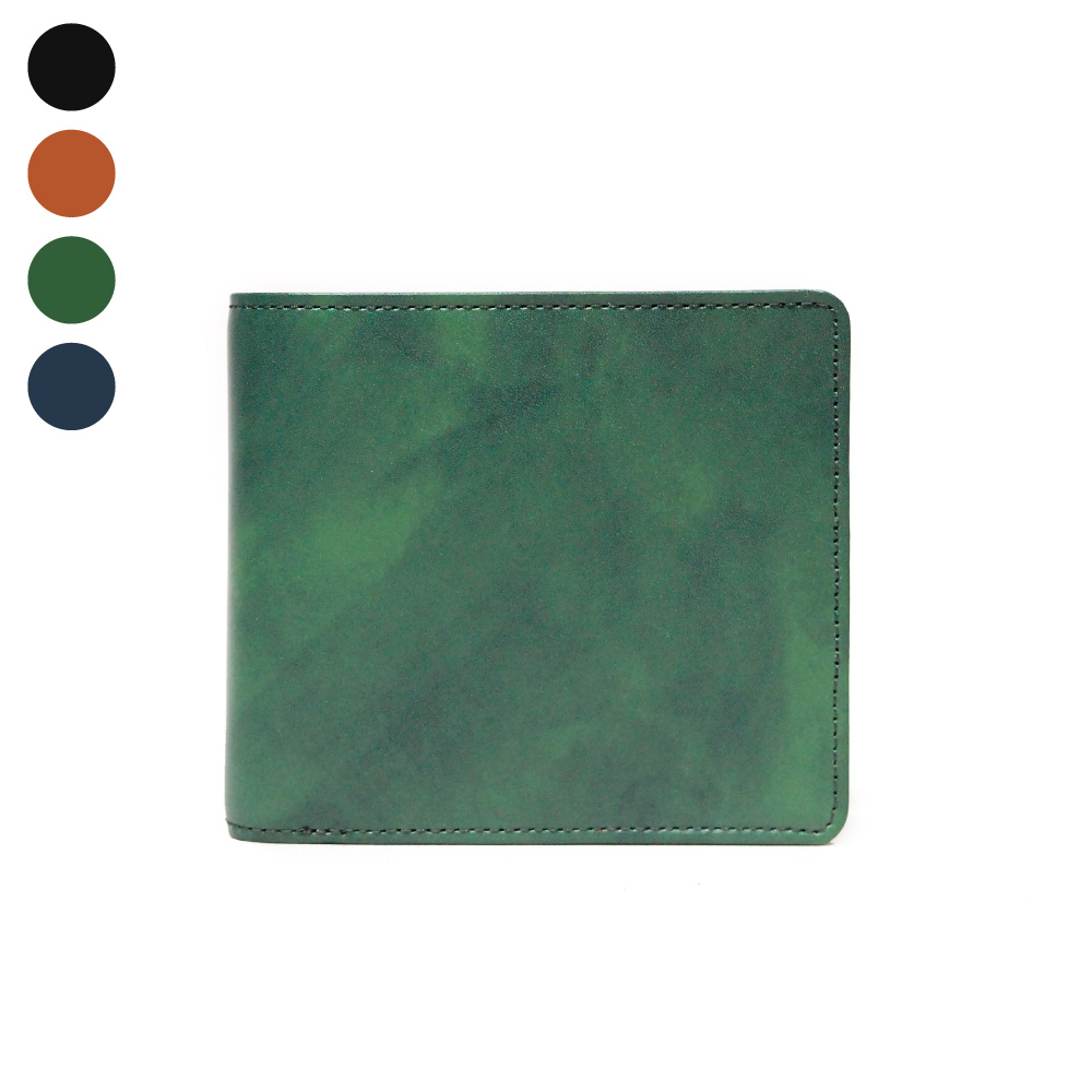 ムラ染めオリーブレザー 2つ折り財布 [N-1704]