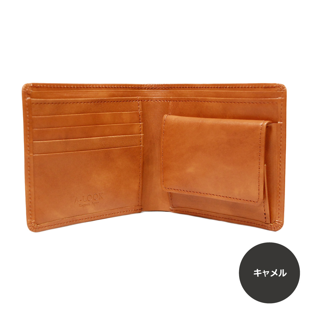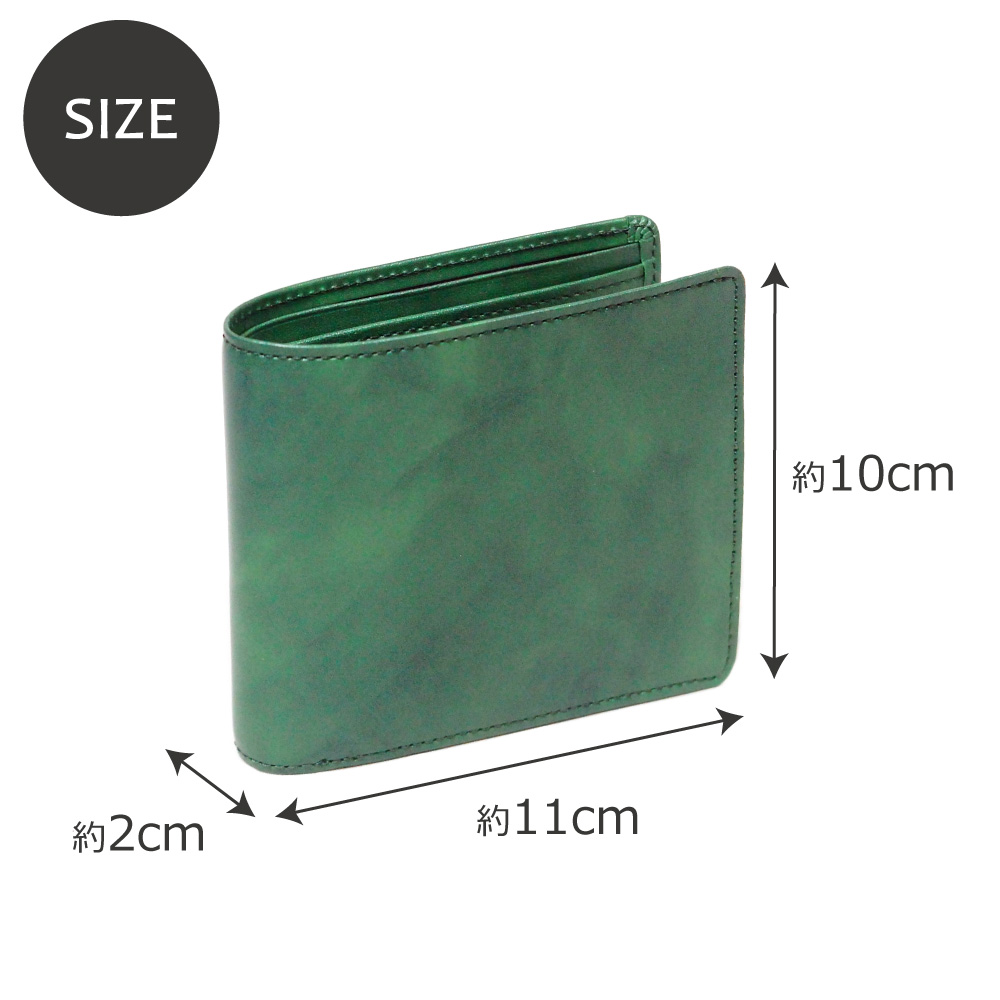 香川県小豆島産のオリーブオイルを皮革に浸透させ、しっとりした触感と上品なツヤ感を表現した高品質オリーブレザーを使用した、スタンダードな2つ折り財布です。ジャケットの胸ポケットにもスッと収まるサイズ感で、ビジネスにも普段使いにも使える、贈り物にもおすすめの一品です。