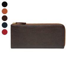 箔加工や型押しなどの技法を使った牛革の長財布です。全カラー共通のデザインは、薄さが人気のL字ファスナー型です。